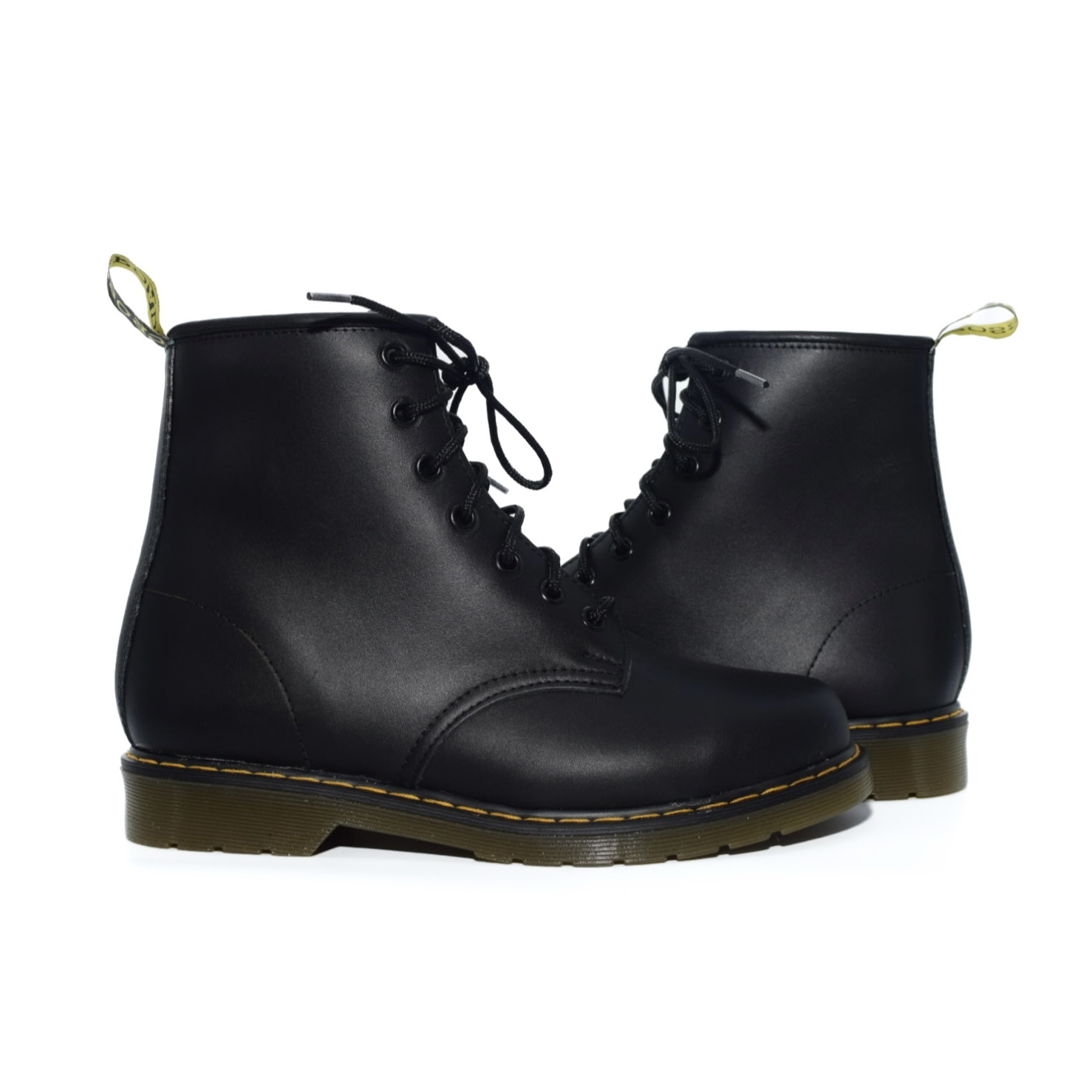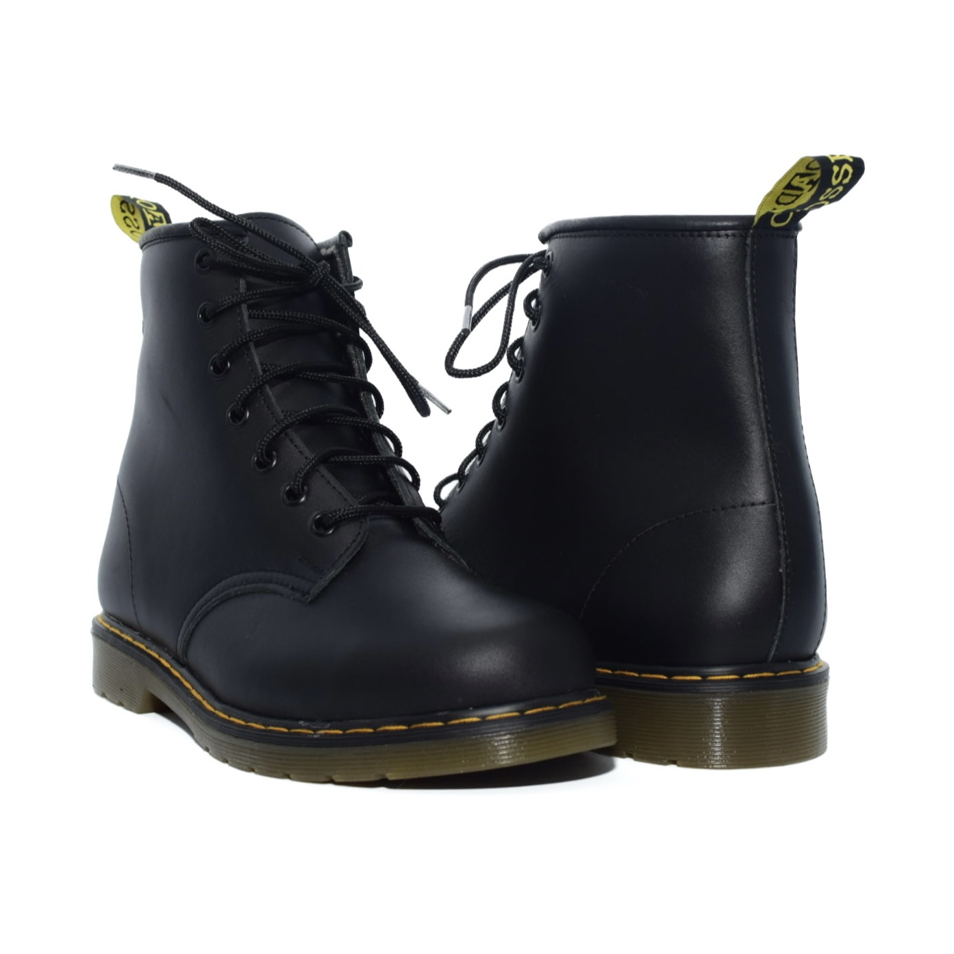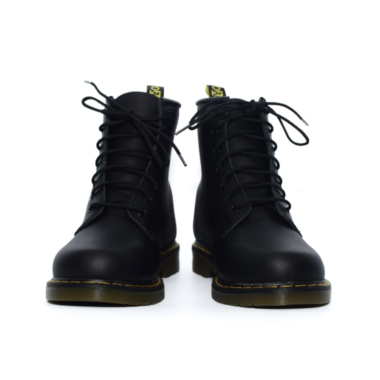 Handmade Crossroads Combat Leather Boots. Smooth leather upper, fabric lining for comfort. Classic yellow stitch around the sole making it stylish for your every day outfits.